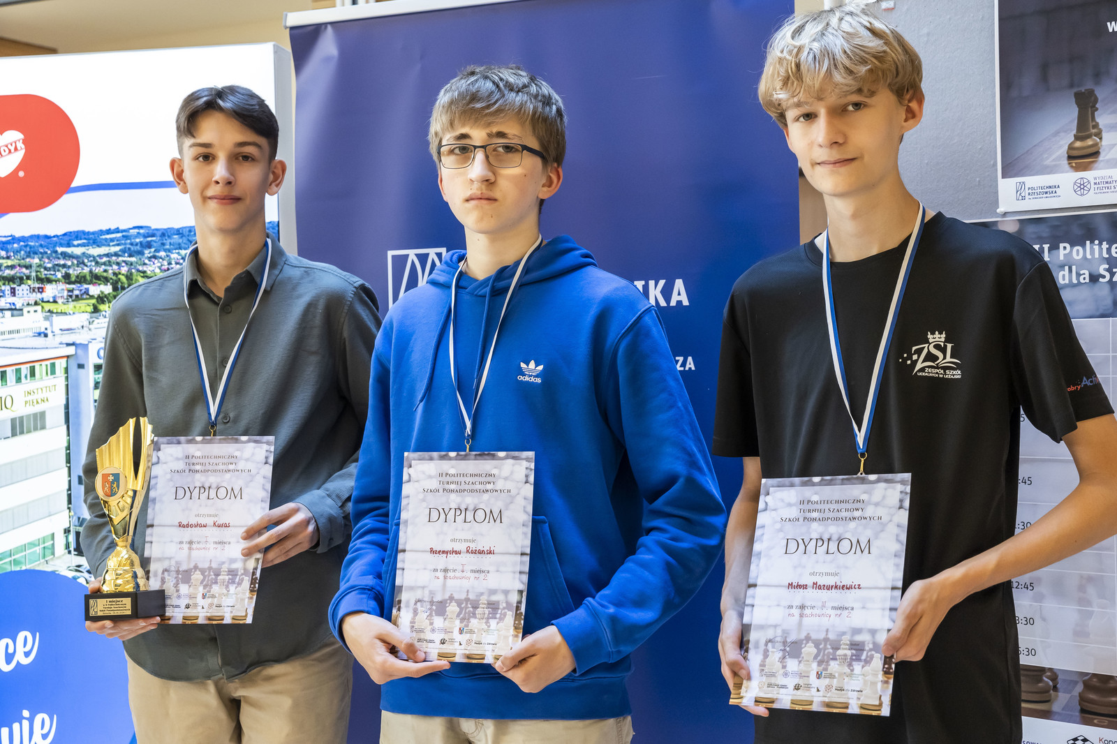 - szachownica nr 2: Radosław Kuras z II Liceum Ogólnokształcącego w Rzeszowie, Przemysław Różański z Liceum Ogólnokształcącego Sióstr Prezentek w Rzeszowie, Miłosz Mazurkiewicz z Zespołu Szkół Licealnych w Leżajsku,