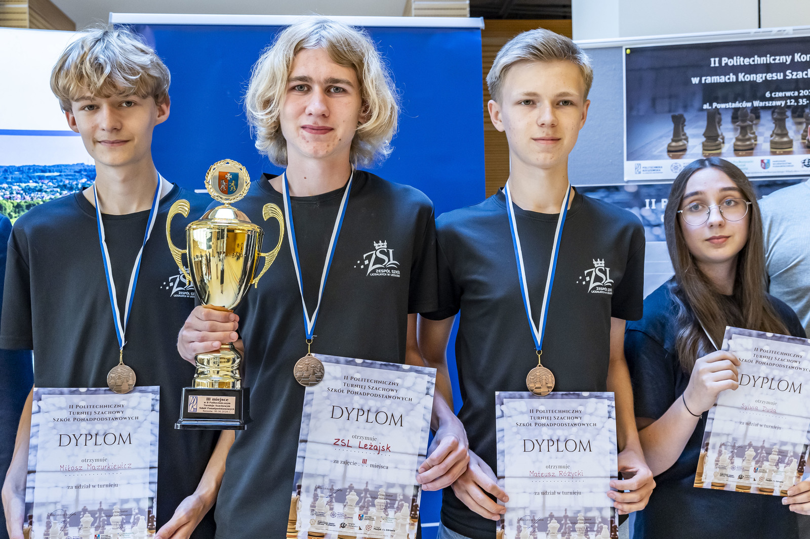 - szachownica nr 3: Maja Bauer z II Liceum Ogólnokształcącego w Rzeszowie, Mateusz Różycki z Zespołu Szkół Licealnych w Leżajsku, Gabriel Kasprzyk z Liceum Ogólnokształcącego Sióstr Prezentek w Rzeszowie,