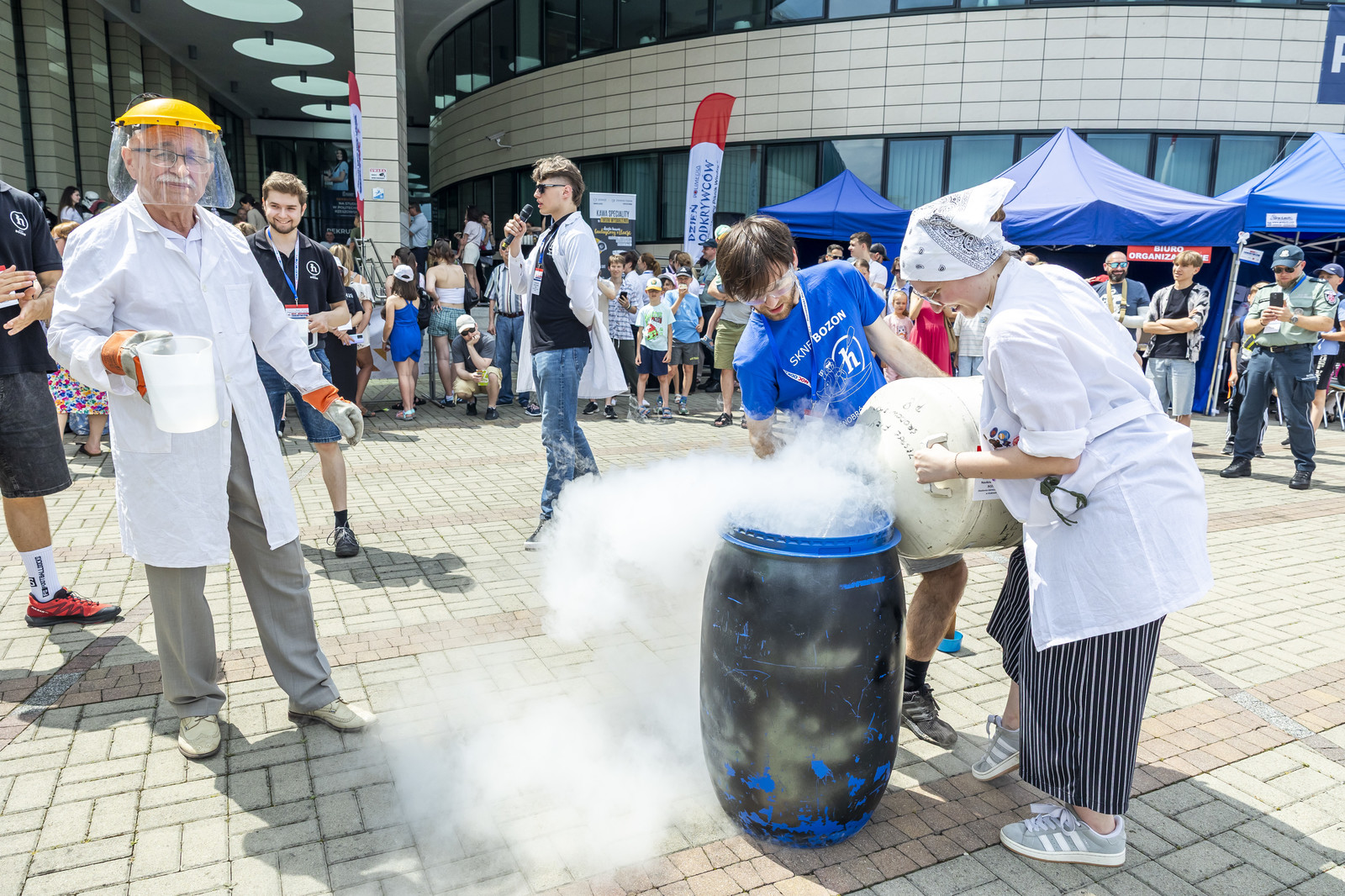 Na miłośników wybuchowych atrakcji czekali studenci Koła Naukowego „ESPRIT”, którzy przygotowali spektakularne pokazy chemiczne. Uczestnicy mogli również wysłuchać ciekawych wykładów –„Kosmiczną archeologię” opisywała Magdalena Ithilnar Stawniak, postać „Wyspiańskiego – Odkrywcy” przybliżyła Jolanta Bobala, a o „Prompt engineering, czyli jak dogadać się ze sztuczną inteligencją?” opowiedział Marcin Krawczyk. Mali i duzi odkrywcy spotkali się również z Magda „Cathia” Kozłowska zabrała małych i dużych odkrywców w podróż po galaktyce w ramach prelekcji nt. „Gwiezdnowojenna droga bohatera, czyli monomit w Gwiezdnych Wojnach”. Pokazy fizyczne Koła Naukowego FOTON („Jak fizyka wprawia świat w ruch”) oraz pokazy wysokich napięć i galeria lamp plazmowych Teslacoil jak zawsze przyciągnęły tłumy widzów. Na „Noc z gwiazdami”, czyli na finałowy pokaz pikniku zaprosili Małgosia Wilczak i Paweł Pasterz wraz z gościem specjalnym Maciejem Milczanowskim.