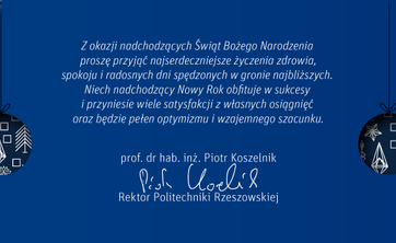 Najserdeczniejsze życzenia z okazji Świąt Bożego Narodzenia składa rektor Politechniki Rzeszowskiej prof. dr hab. inż. Piotr Koszelnik.