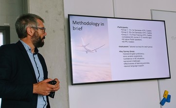 „Dostosowania nauczania języka angielskiego w lotnictwie do potrzeb komunikacyjnych pilotów: Badanie porównawcze uczestników szkolenia ATPL” przedstawił dr Piotr Czerwiński.
