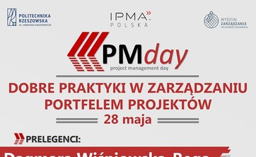 Wydział Zarządzania Politechniki Rzeszowskiej po raz kolejny zaprasza na PMDay. Hasło przewodnie tej edycji seminarium to "Dobre praktyki w zarządzaniu portfelem projektów”.