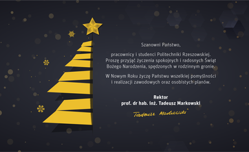 - Proszę przyjąć życzenia spokojnych i radosnych Świąt Bożego Narodzenia. W Nowym Roku życzę Państwu wszelkiej pomyślności i realizacji zawodowych oraz osobistych planów - mówi prof. Tadeusz Markowski