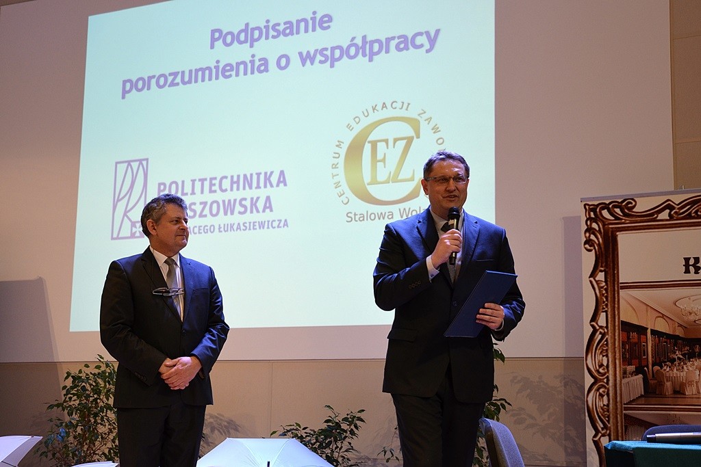 15 marca br. Politechnika Rzeszowska objęła honorowy patronat nad dwiema klasami – o profilu „technik mechatronik” i „technik pojazdów samochodowych” Centrum Edukacji Zawodowej w Stalowej Woli. Odpowiednią umowę podpisali: rektor PRz prof. dr hab. inż. Tadeusz Markowski, prorektor ds. kształcenia dr hab. inż. Grzegorz Masłowski, prof. PRz, oraz dziekan WMT dr hab. inż. Aleksander Mazurkow, prof. PRz, a także dyrektor CEZ w Stalowej Woli Piotr Żyjewski.