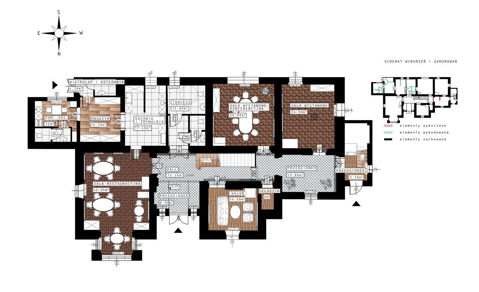 Zespół, w którego skład weszły studentki kierunku architektura: Iryna Danyliuk, Anna Gardzińska, Daria Józefczyk, Natalia Możdżeń, Natalia Pacia, Gabriela Stanula, Gabriela Walczyna, Ilona Wójcik, Monika Wzorek, przeprowadził inwentaryzację architektoniczną budynku, która stała się podstawą do sporządzenia aktualnej i szczegółowej dokumentacji obiektu. Na miejscu przeprowadzono badania architektoniczne i inwentaryzację zabytkowych detali, które dostarczyły informacji o stanie całego zabytkowego zespołu budynków. Opracowano również projekt adaptacji z pomieszczeniami przeznaczonymi na ekspozycje muzealne.
